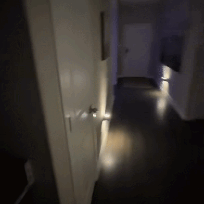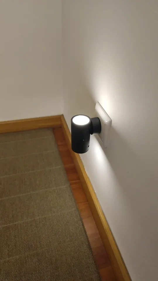 Adjustable brightness (dimmable, ~60–249 lumens). Warm white (~3000K) is cozy and safe for hallways/stairs. Enough light to navigate without being harsh.