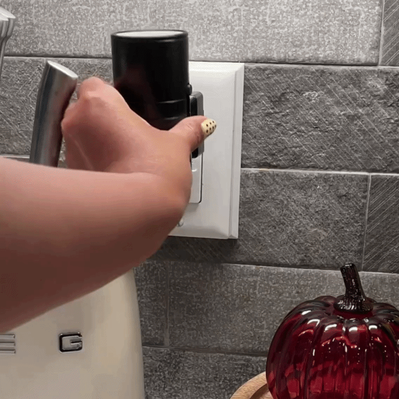Plug-in design — just plug into any standard US outlet (no wiring/tools). Compact size (1.9 in × 3.5 in), slim, doesn't block the second plug in most cases. UL/CE certified, low power (<5W).
